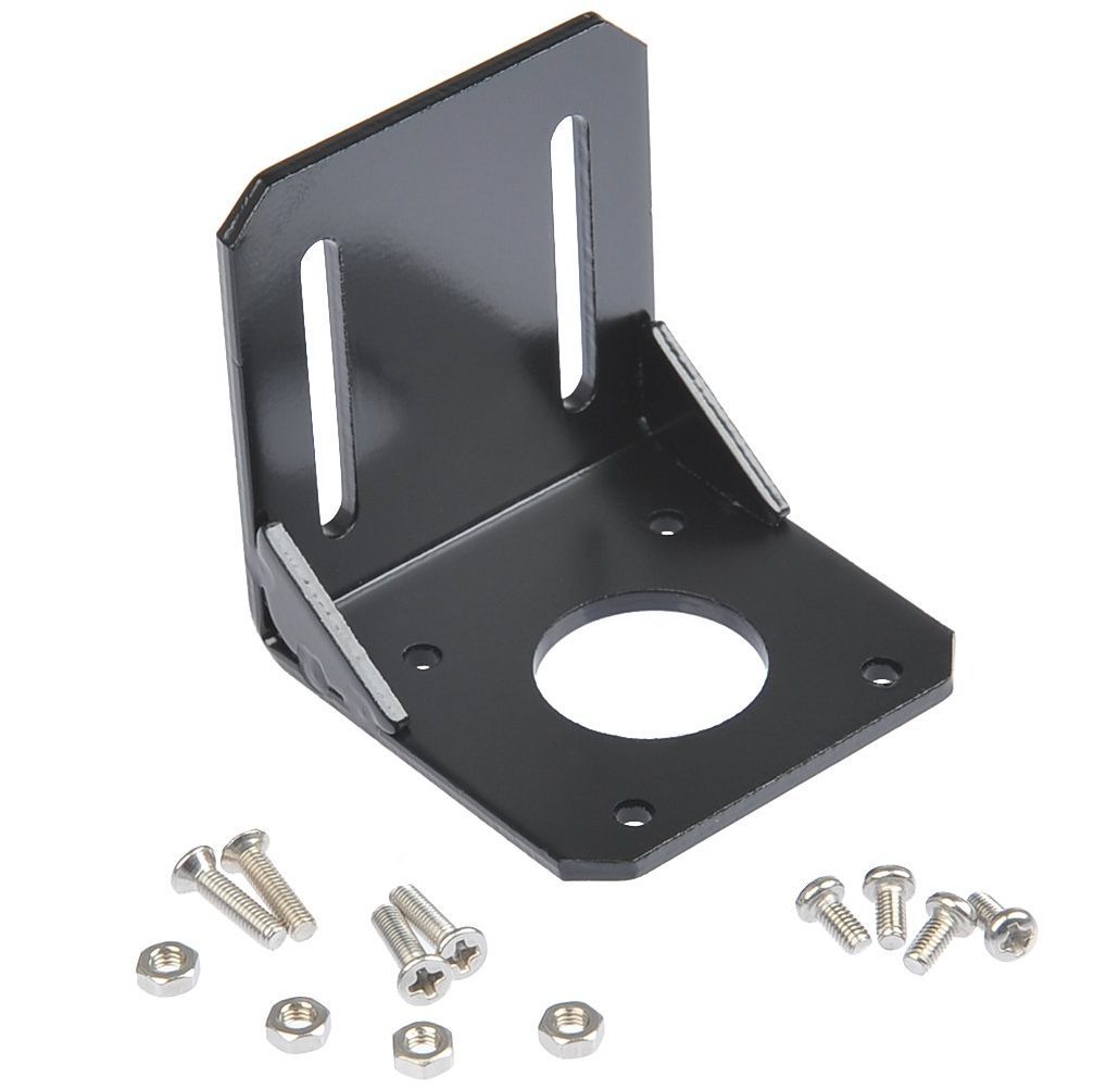Ocelová montážní konzola pro krokové motory NEMA17. Barva: černá Balíček obsahuje jednu montážní konzoli L pro krokový motor NEMA17.