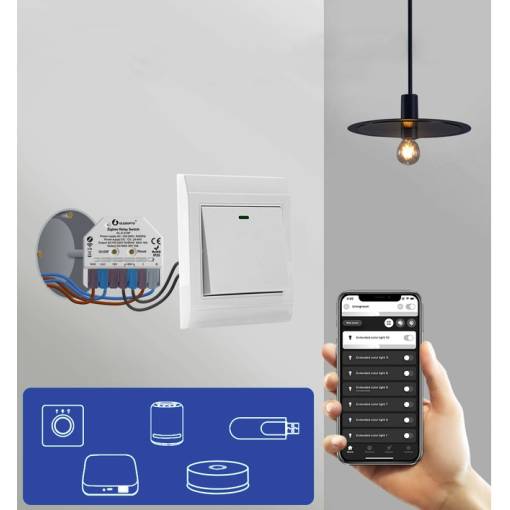 Podomítkový řídící modul kompatibilní s protokolem Zigbee 3.0 s reléovým výstupem. Je to všestranné a flexibilní řešení pro širokou škálu úkolů. Díky technologii ZigBee 3.0 podporuje inteligentní ovládání, přičemž lze ovládat i manuálně pomocí běžných přepínačů nebo tlačítek.