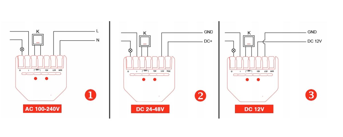 - Kabelové ovládání: Kolébkový spínač nebo tlačítkový spínač lze připojit ke vstupnímu portu spínače