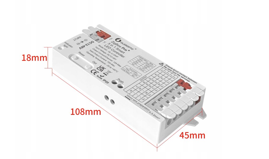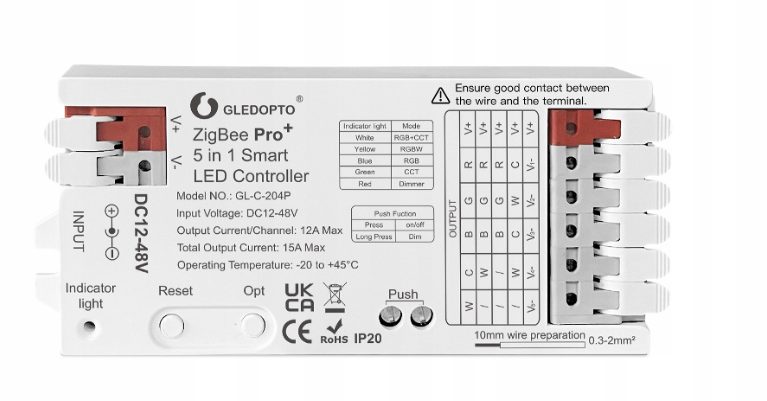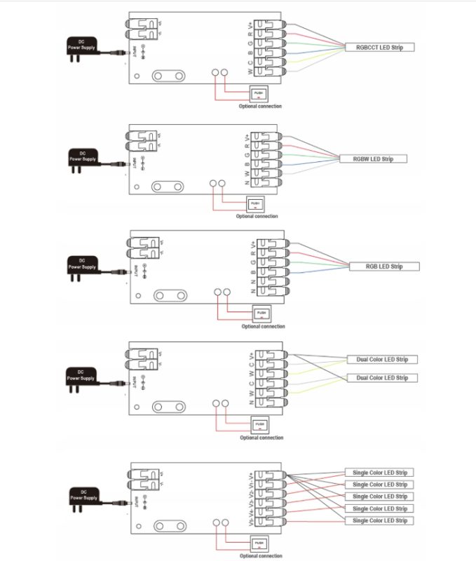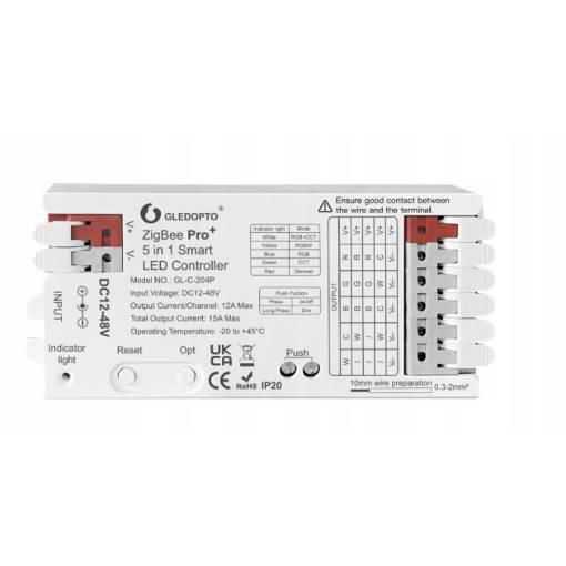 • Režimy: RGBCCT, RGBW, RGB, CCT, Dimmer