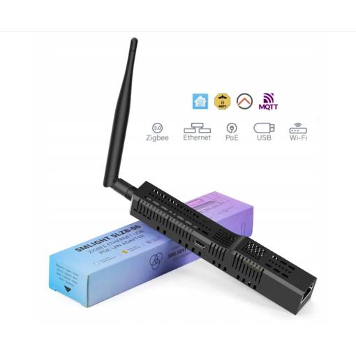Výkonný Zigbee 3.0 koordinátor je určený pro řízení chytré domácnosti. Umožňuje připojení přes LAN nebo USB, a díky podpoře PoE (Power over Ethernet) může být napájen přímo datovým kabelem bez potřeby samostatného zdroje. Zařízení slouží jako centrální mozek Zigbee sítě – propojuje a ovládá chytrá zařízení, jako jsou žárovky, senzory nebo vypínače.