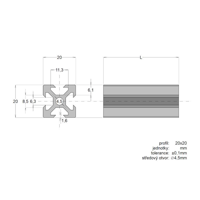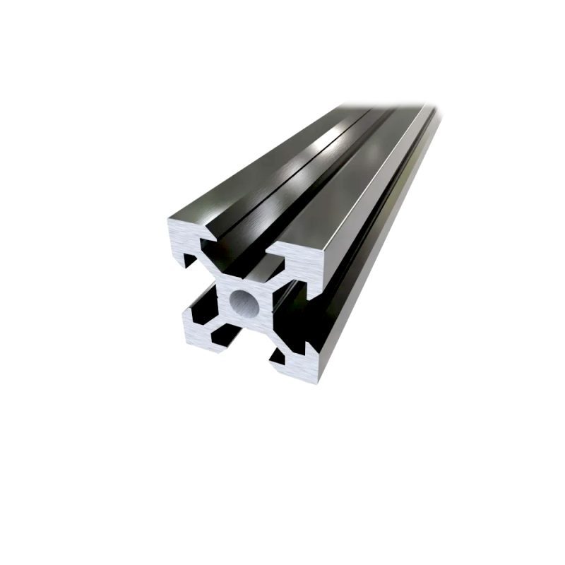 Přesný hliníkový profil určený pro lehké, ale pevné a variabilní konstrukce. V černé barvě a s V-slotem určeným k pojezdům.