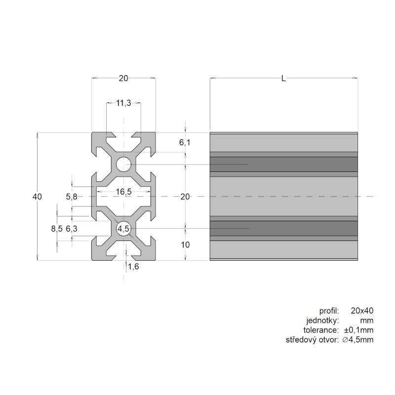 Přesný hliníkový profil určený pro lehké, ale pevné a variabilní konstrukce. V černé barvě a s V-slotem určeným k pojezdům.