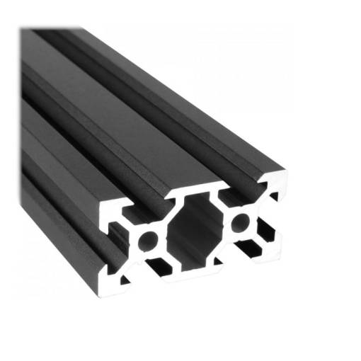 Přesný hliníkový profil určený pro lehké, ale pevné a variabilní konstrukce. V černé barvě a s V-slotem určeným k pojezdům.