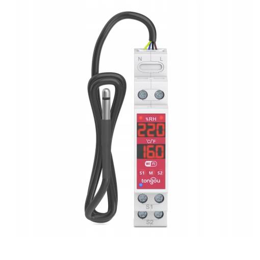 Tento inteligentní DIN modul kombinuje dvoukanálové řídicí relé se senzorem teploty a vlhkosti, díky čemuž poskytuje kompletní kontrolu nad prostředím i připojenými zařízeními ve vaší chytré domácnosti.