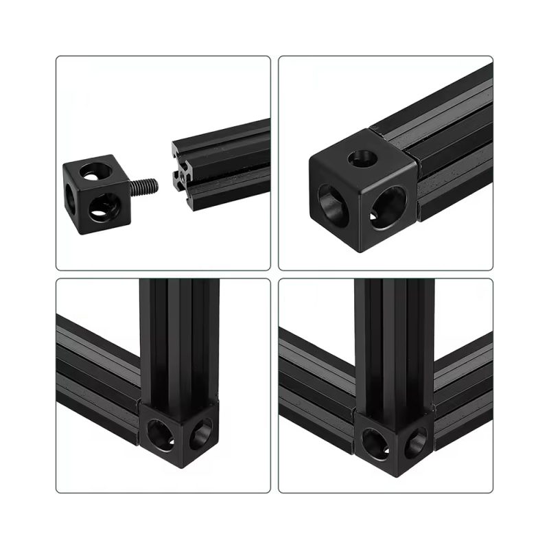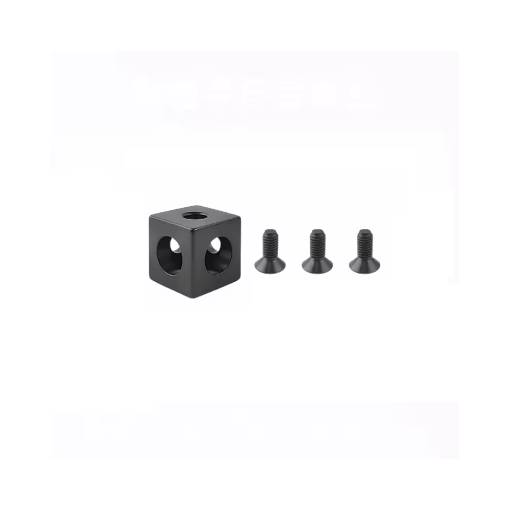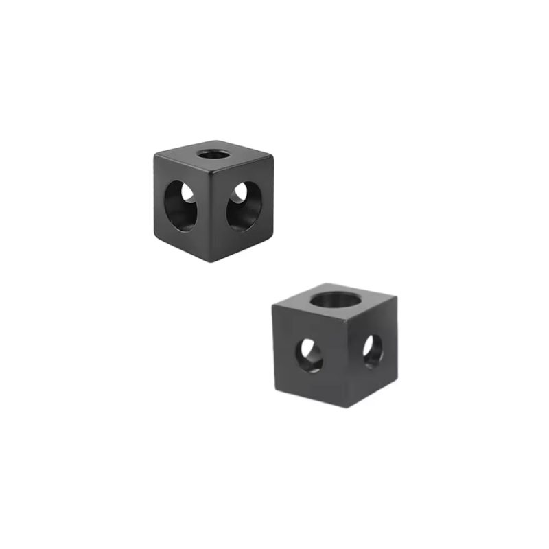 Ocelová kostka, umožňující rohové spojení až třech profilů v prvém úhlu. Instaluje se z profilové části, zakrývá řez profilu a vytváří tak pohledově příjemnou a robustní konstrukci. Ideální pro montáž hliníkových rámových konstrukcí.