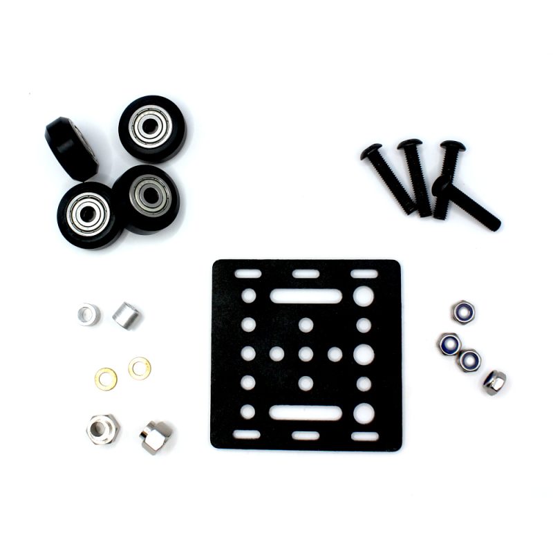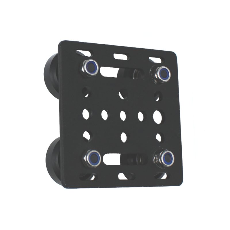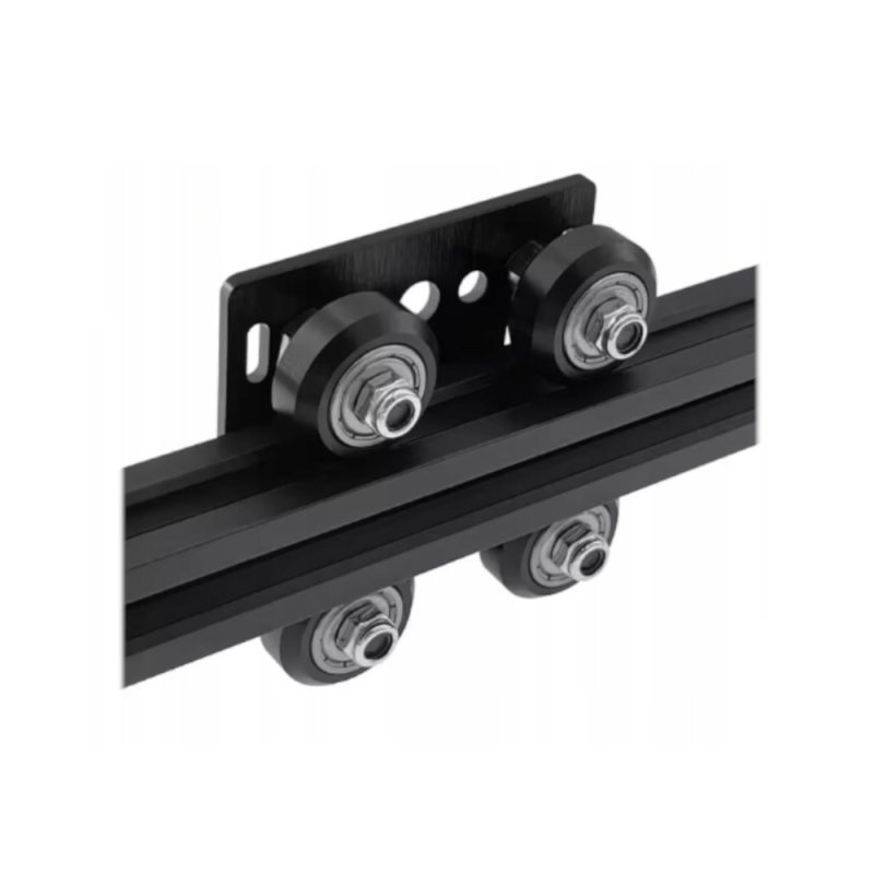 Vozík z lehké hliníkové slitiny určený pro snadnou montáž na hliníkové profily 20x20mm s V-slotem. Kolečka z tvrdého plastu s přesným profilem a osazeny dvěma valivými ložisky zajišťují plynulý, přesný a tichý posuv po profilu.