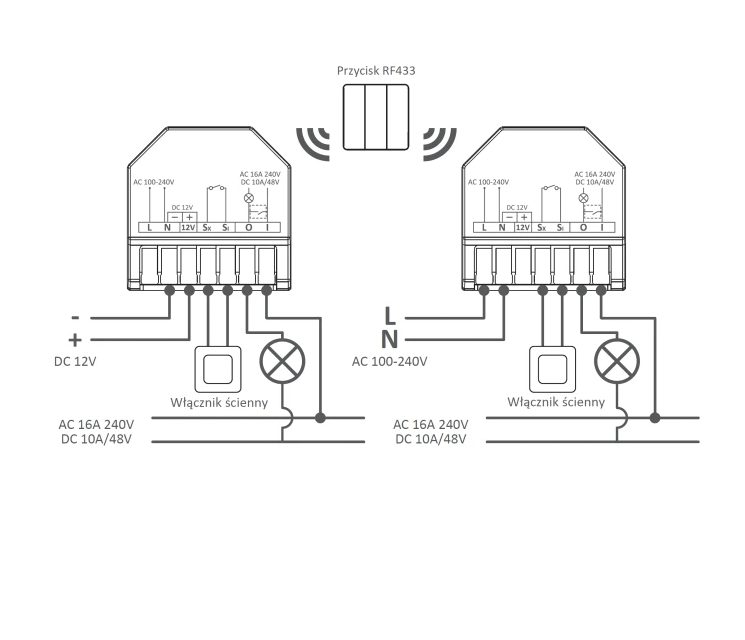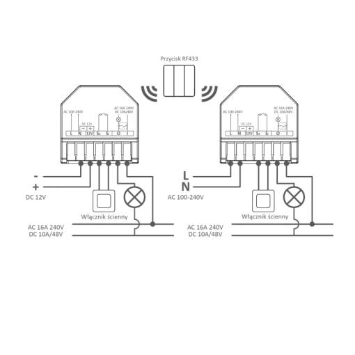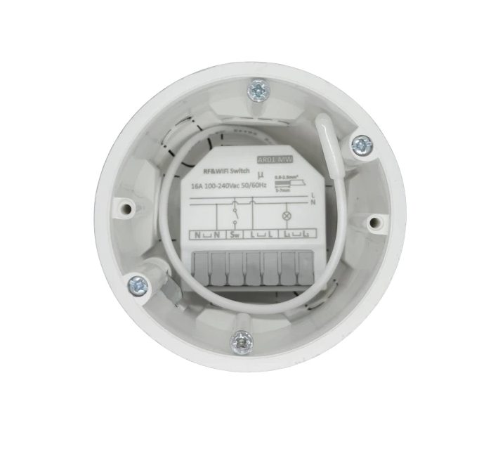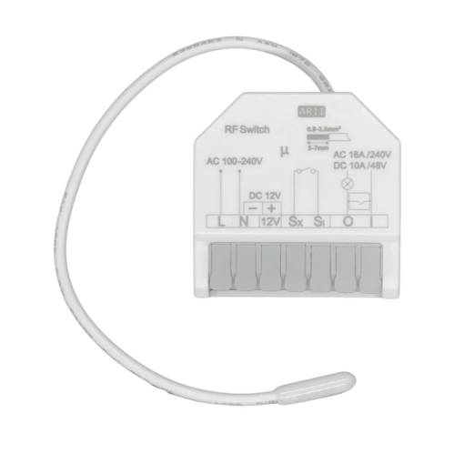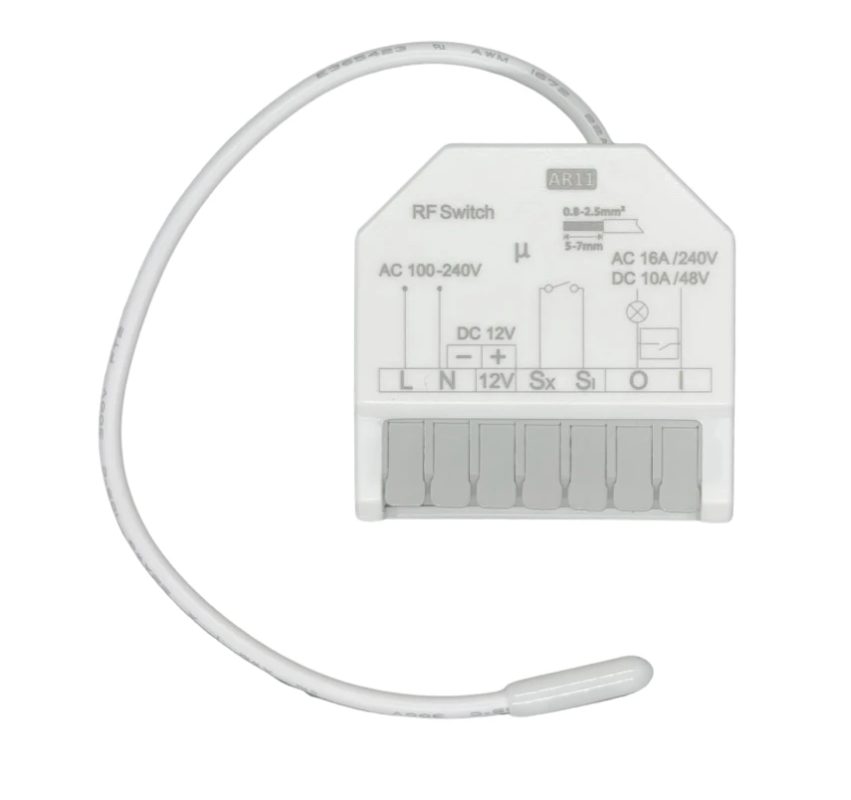 Zapuštěný RF433MHz relé modul umožňuje proměnit běžný nástěnný vypínač nebo zásuvku v chytré zařízení ovládané bezdrátovým RF433 tlačítkem nebo přepínačem.
