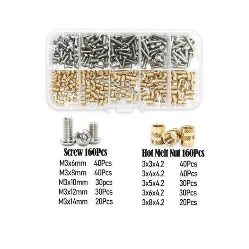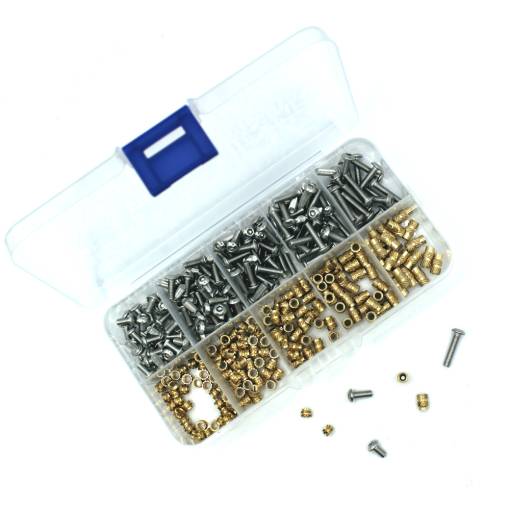 Sada zápustných vložek se závity M3 a šrouby se slušivou inbusovou halvou pro všestranné využití v nejrůznějších projektech a 3D tisku.