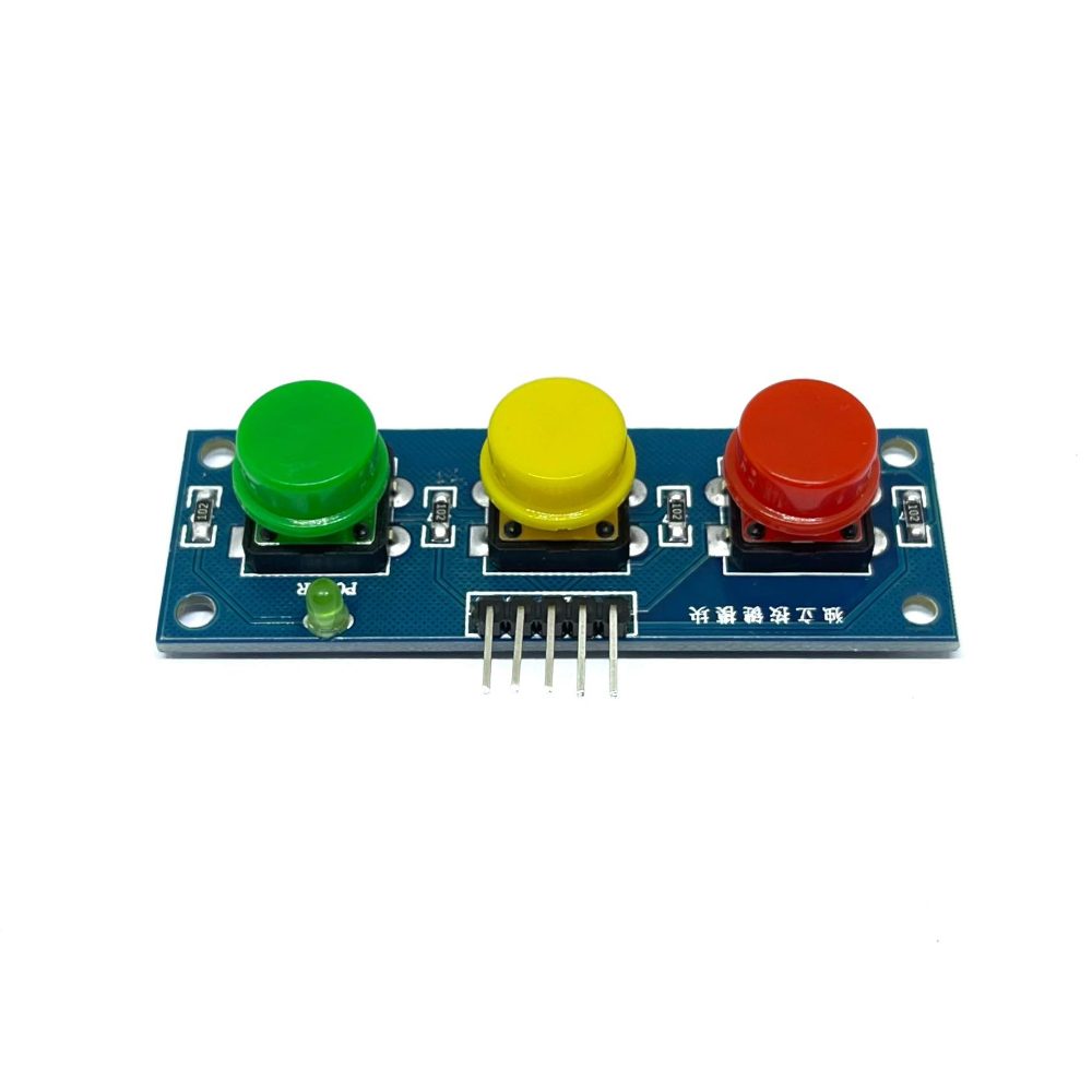 Praktický tlačítkový modul pro Arduino nebo jiné mikrokontrolery. Robustní mikrospínače s širokými hmatníky umožňují pohodlnou obsluhu. Variabilní barvy hmatníků dodávají modulu atraktivní a intuitivní vzhled. Ideální pro umístění pod přístrojový panel.