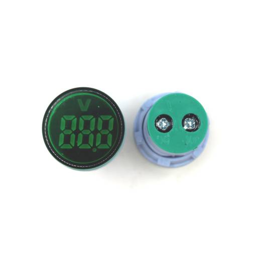 1x Panelový voltmetr pro DC napětí 5-100V, kulatý 22mm - zelený