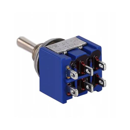 - Logika spínače: 2x přepínací kontakt třípolohový (ON/OFF/ON)