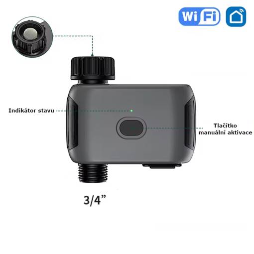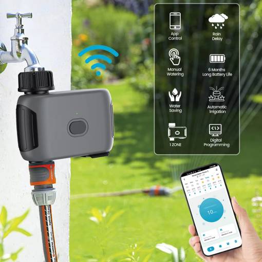 Díky WiFi komunikaci s aplikacemi TUYA nebo SmartLife můžete proměnit svou zahradní hadici v plně automatizovaný zavlažovací systém. Už žádný povadlý trávník či záhonek. Ovládejte zavlažování podle individuálně nastavených časových úseků, nebo i dle aktuálního počasí!