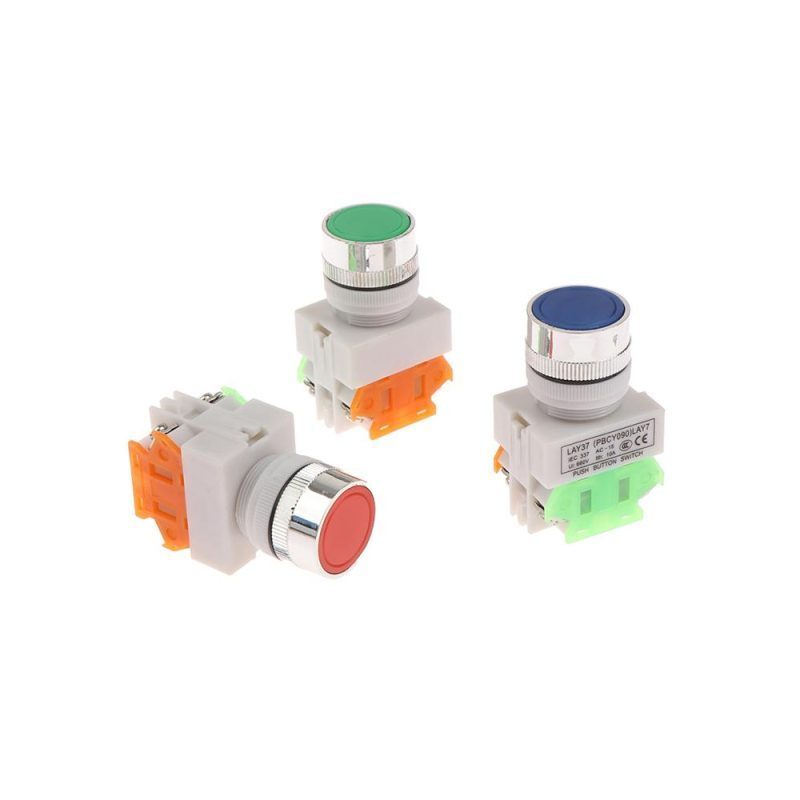 1x Tlačítkový panelový spínač LAY37 - Červený, 22mm, 10A, bez aretace