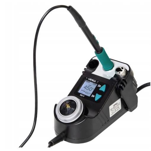 ✔ Digitální regulace teploty – v pažbě i na panelu: Teplotu můžete regulovat přímo na panelu zařízení nebo pomocí tlačítek na pažbě. Taková konstrukce umožňuje rychlé přizpůsobení parametrů bez nutnosti odkládání páječky.