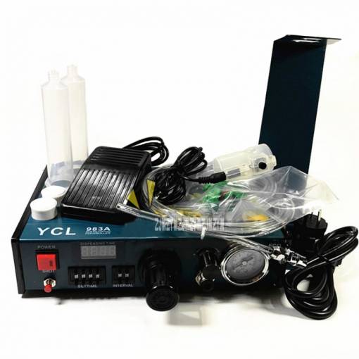 Automatický dávkovač lepidla, pájecí pasty, mazacích hmot a jiných tekutých či pastovitých přípravků s přímým nastavením dávkovacího času v milisekundách. Všechny parametry jsou řízeny plně digitálně. K vytlačování je používán stlačený vzduch, jehož přívod je nutné přivést k ventilu na zadní straně přístroje. Kompresor není součástí dodávky! Pokud máte k dipozici centrální rozvod stlačeného vzduchu o tlaku do 100 psi (cca 6,9 bar), můžete jej použít.